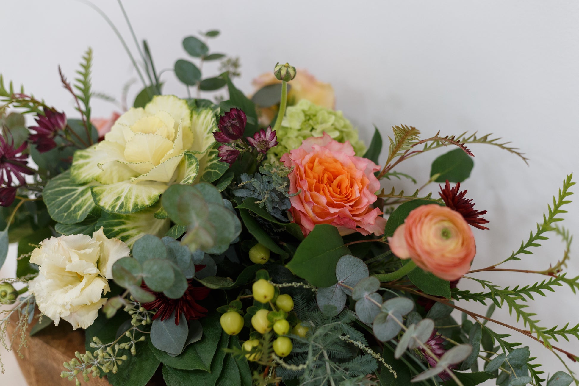 Each Thanksgiving centerpiece is a designer’s choice arrangement, thoughtfully created by our floral team with the freshest blooms of the season. The photos shown reflect the overall style and feeling of the centerpiece you’ll receive. Because flowers are natural and ever-changing, specific varieties and colors may vary based on daily availability.